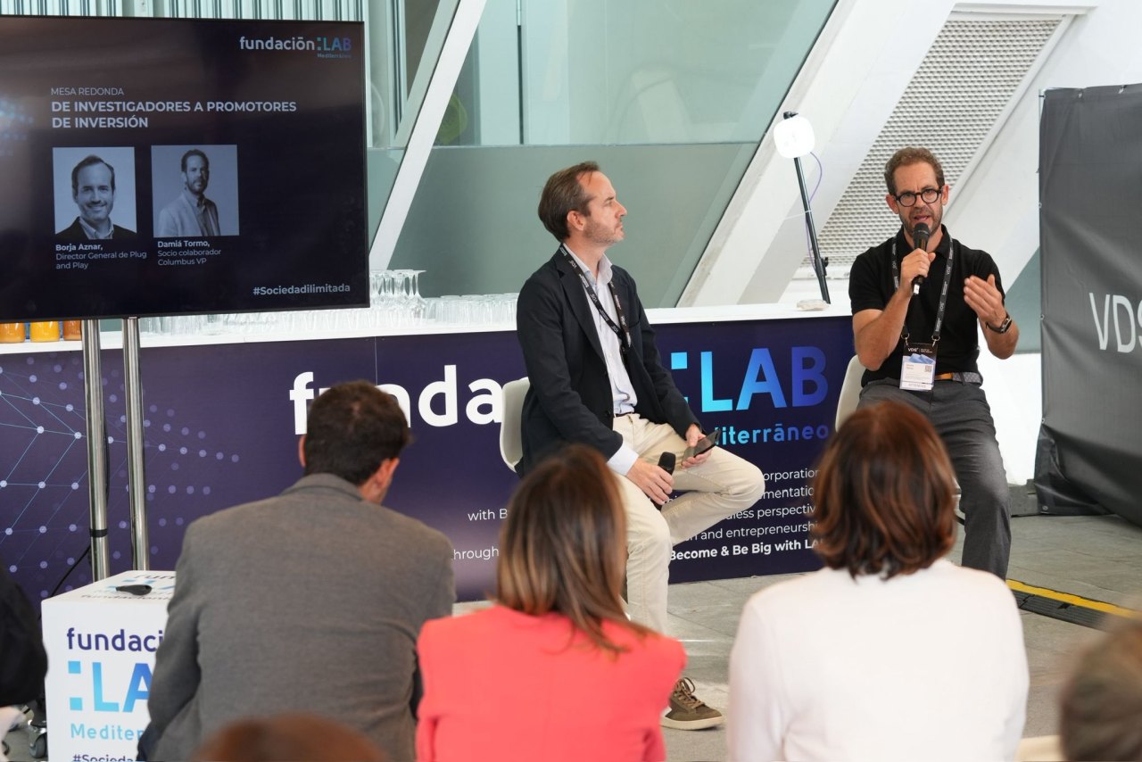 El bloque de inversión incluyó un diálogo con el título “De investigadores a promotores de inversión” entre Borja Aznar (Plug and Play) y Damiá Tormo (Columbus VP).